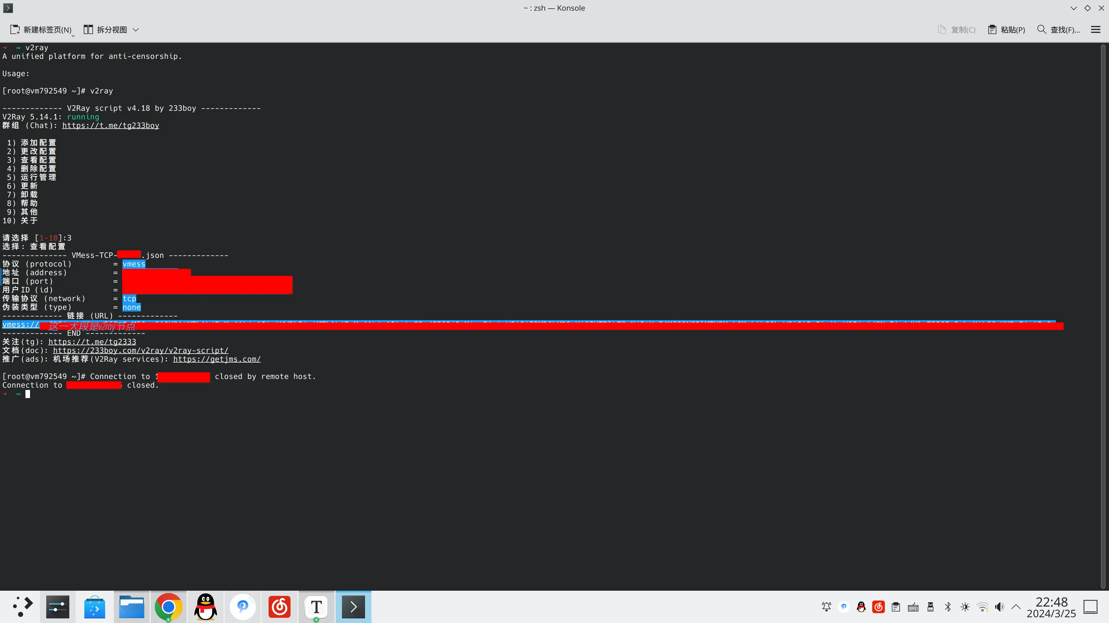 搭建完成出现的蓝色链接,就是v2ray节点链接,复制下来,后面有用。