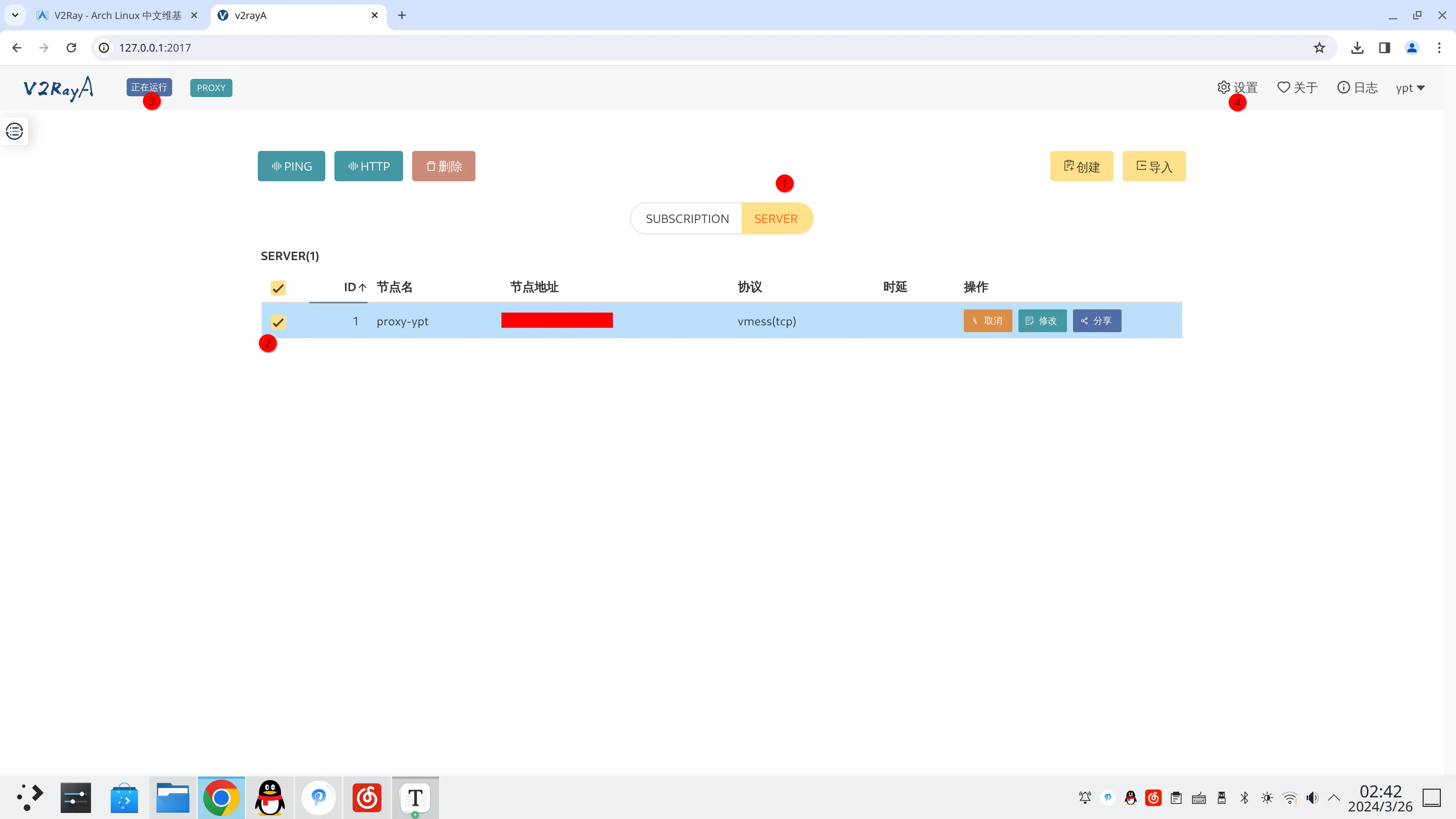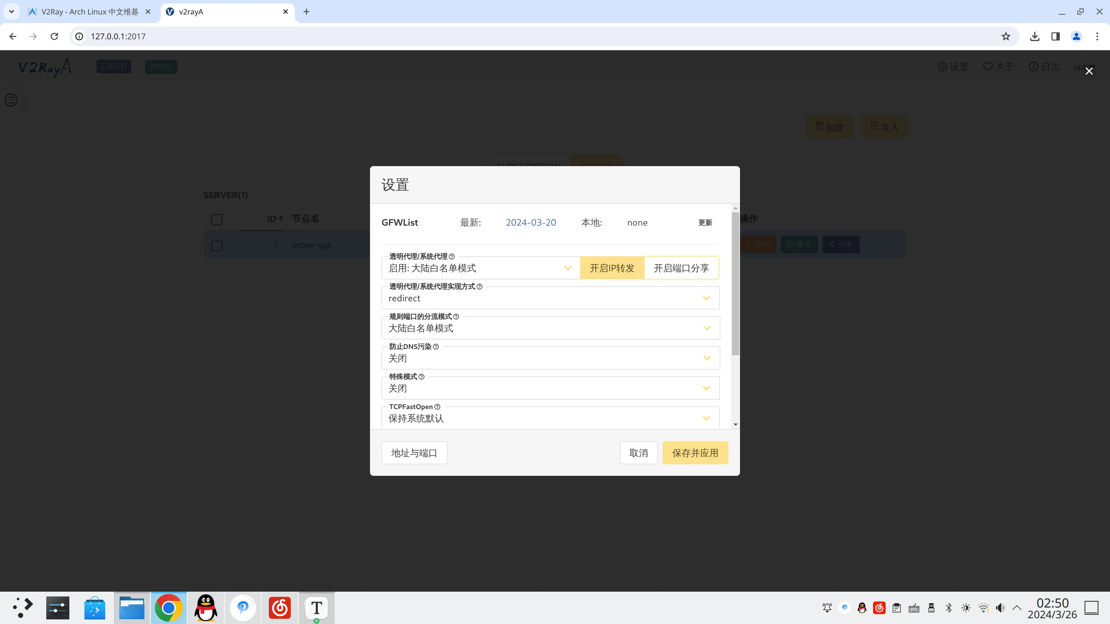 至此开启了浏览器代理,能正常打开www.google.com等网站了,更多高级功能参考[v2raya官网](https://v2raya.org/)