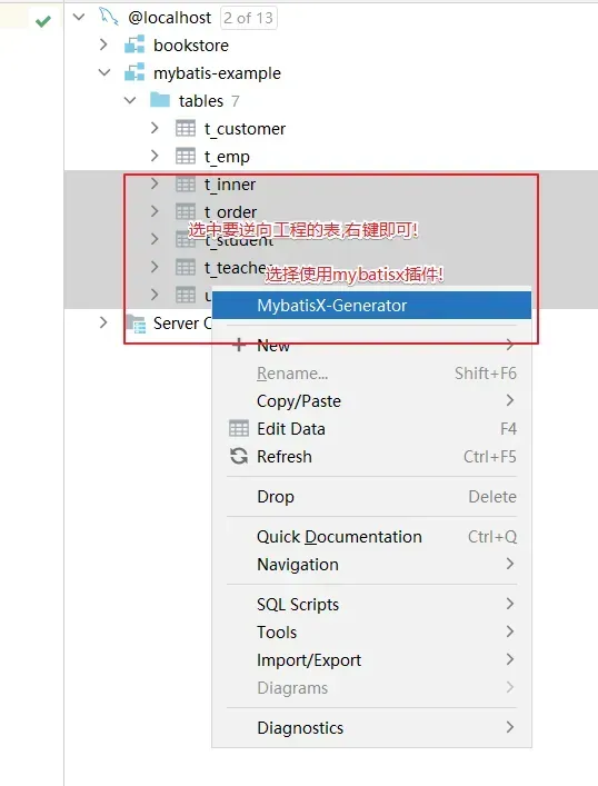 MyBatisX 是一个 MyBatis 的代码生成插件,可以通过简单的配置和操作快速生成 MyBatis Mapper、pojo 类和 Mapper.xml 文件。下面是使用 MyBatisX 插件实现逆向工程的步骤: